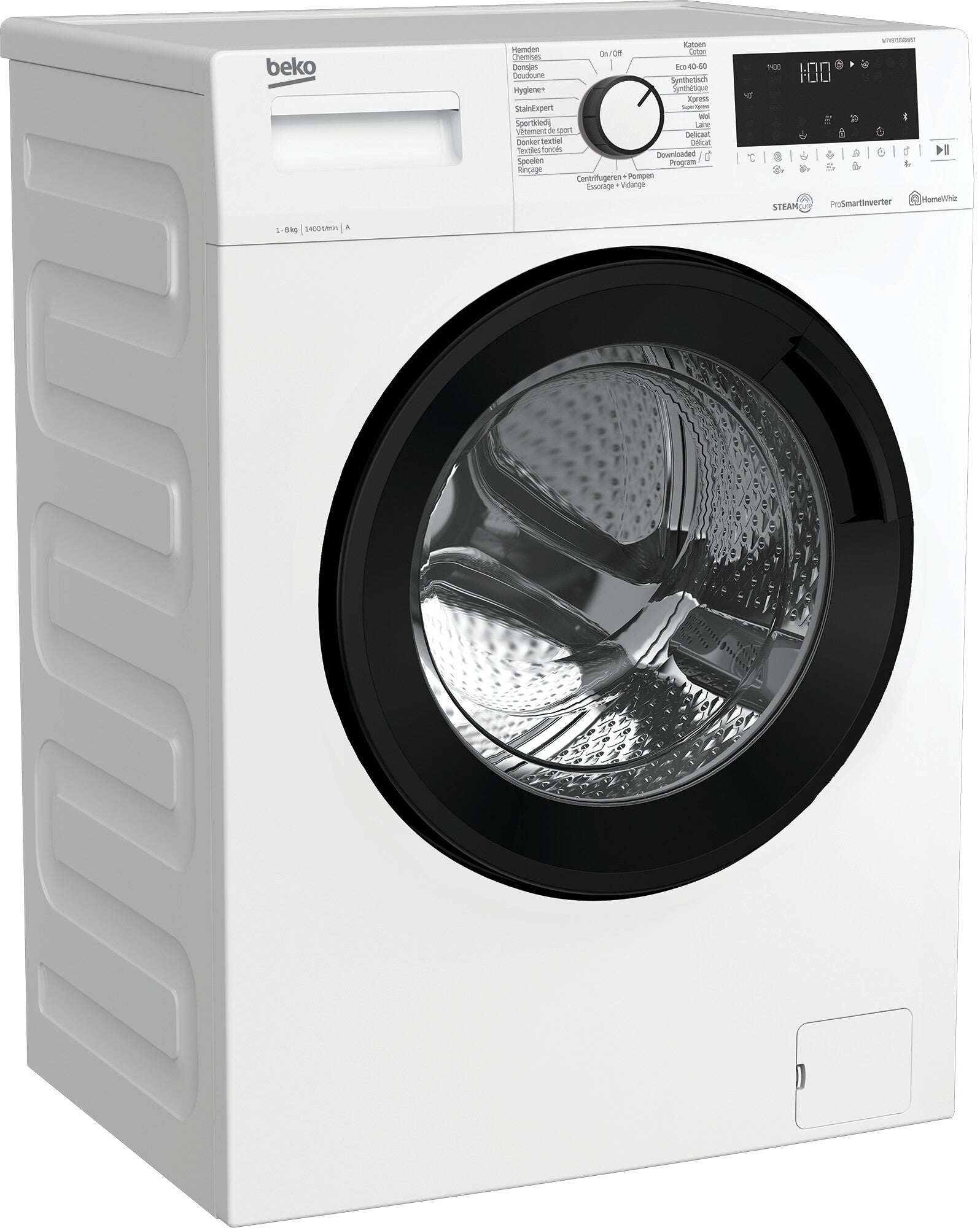 Vrijstaande, 8 kg, 1400 rpm, 72 dB, Energy Efficiency Class A, Digitaal Display, Wit
